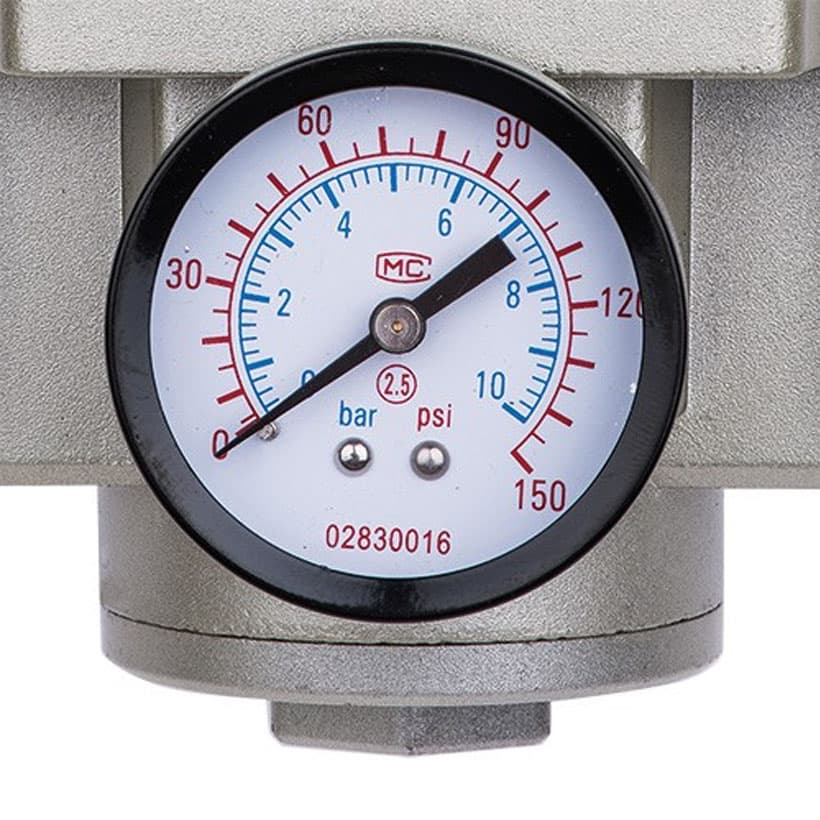 • Regulador de presión 1/4″ con manómetro que incluye soporte para sujeción.
